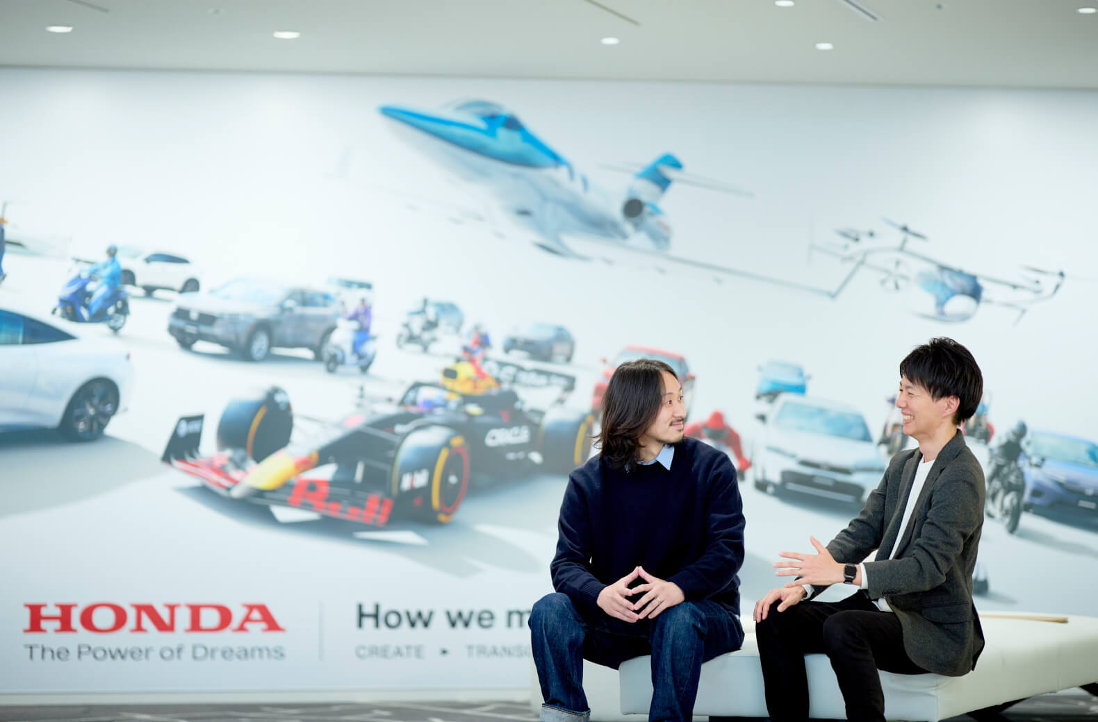 自ら新たなチャレンジに飛び込み、成長してきたふたり。挑戦することを歓迎し、応援する風土は、Hondaの大きな魅力だと笑います。